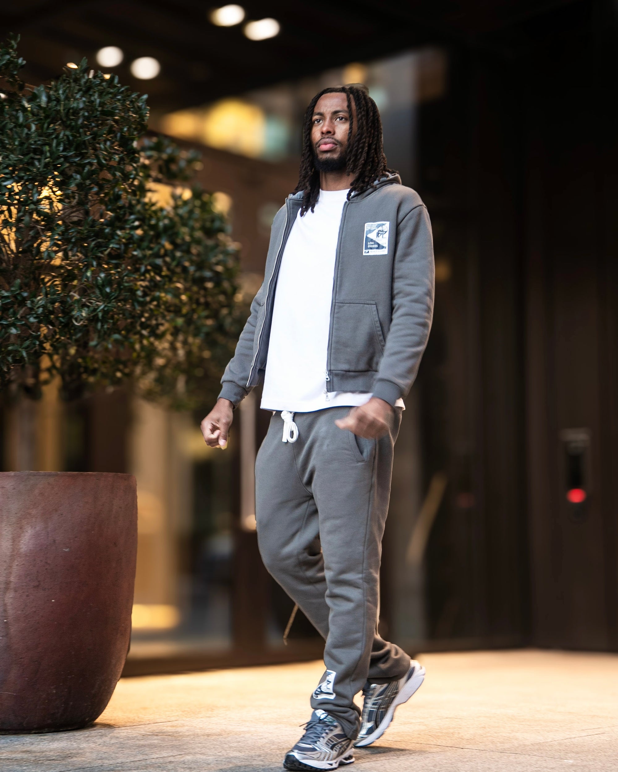 Model 6ft 1 wearing L straight legged 100% organic French Terry cotton 480gsm